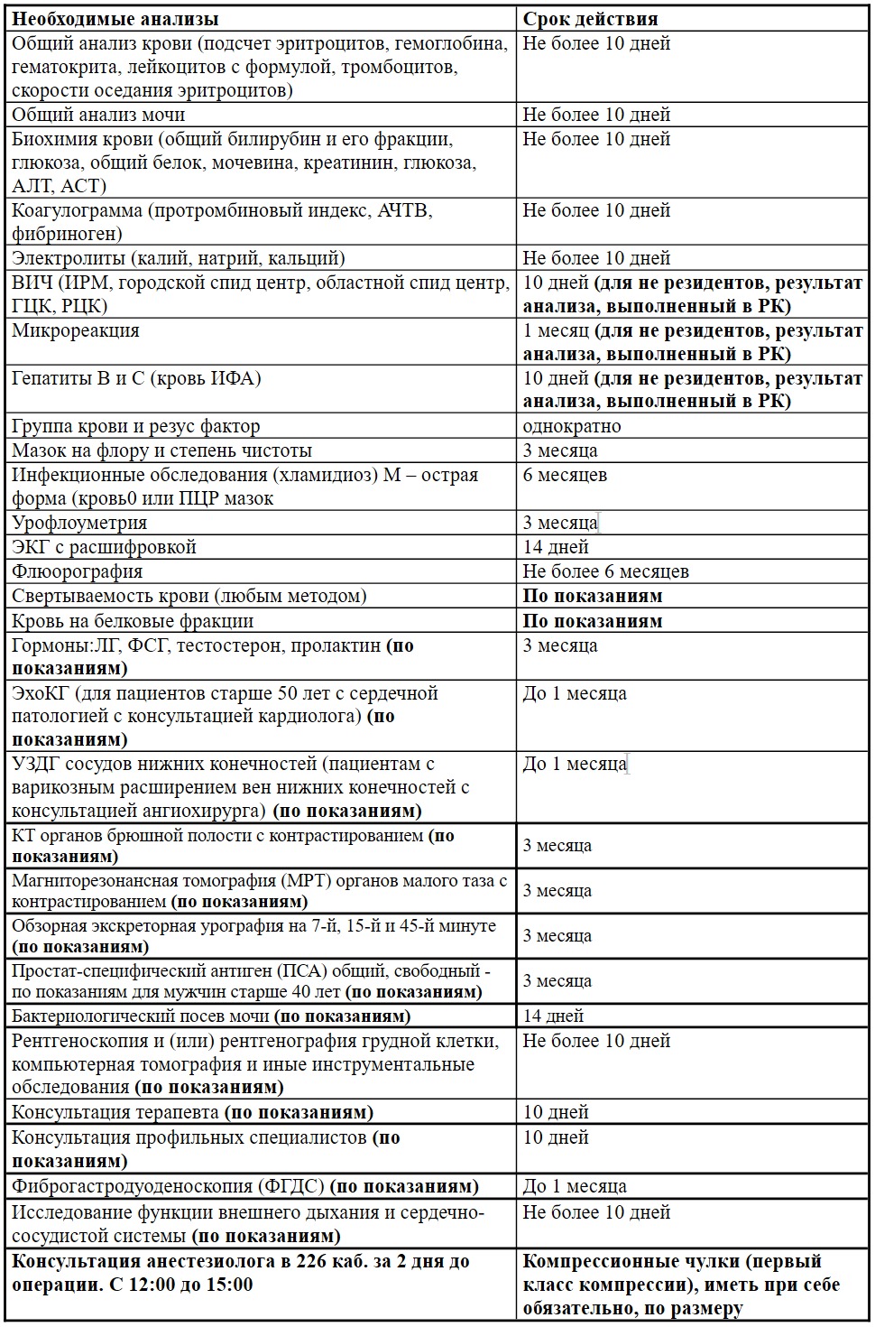 План предоперационного обследования пациента (мужчины) перед малым